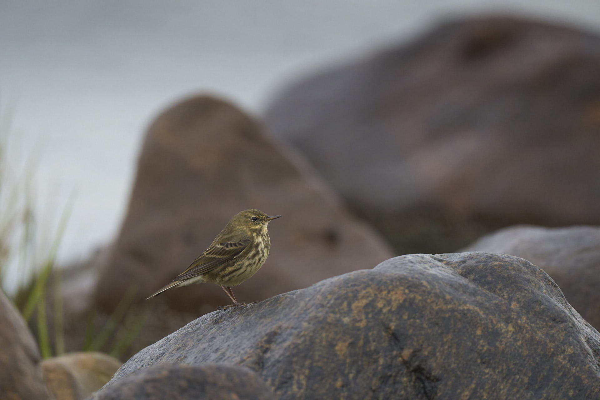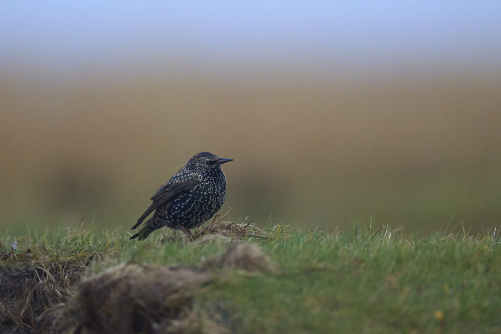 Nedenfor en skærpiber, også fra Låningsvejen. Telefoto-objektiver “hjælper” lidt med perspektivet – det ser næsten, men kun næsten, ud som om, der skydes på øjenhøjde med fuglen: